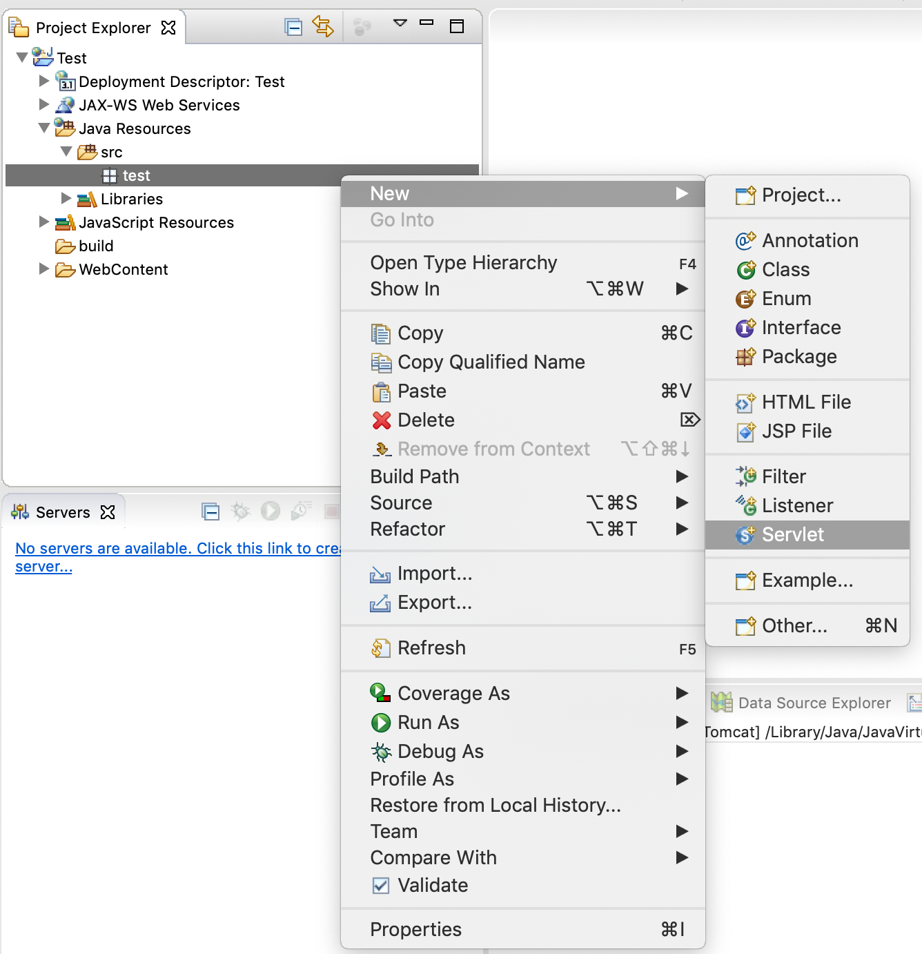 - Tomcat 서버를 생성하게 되면 프로젝트에 Servers가 생성되게 되고, 생성한 Servlet을 web.xml에 등록해야한다.