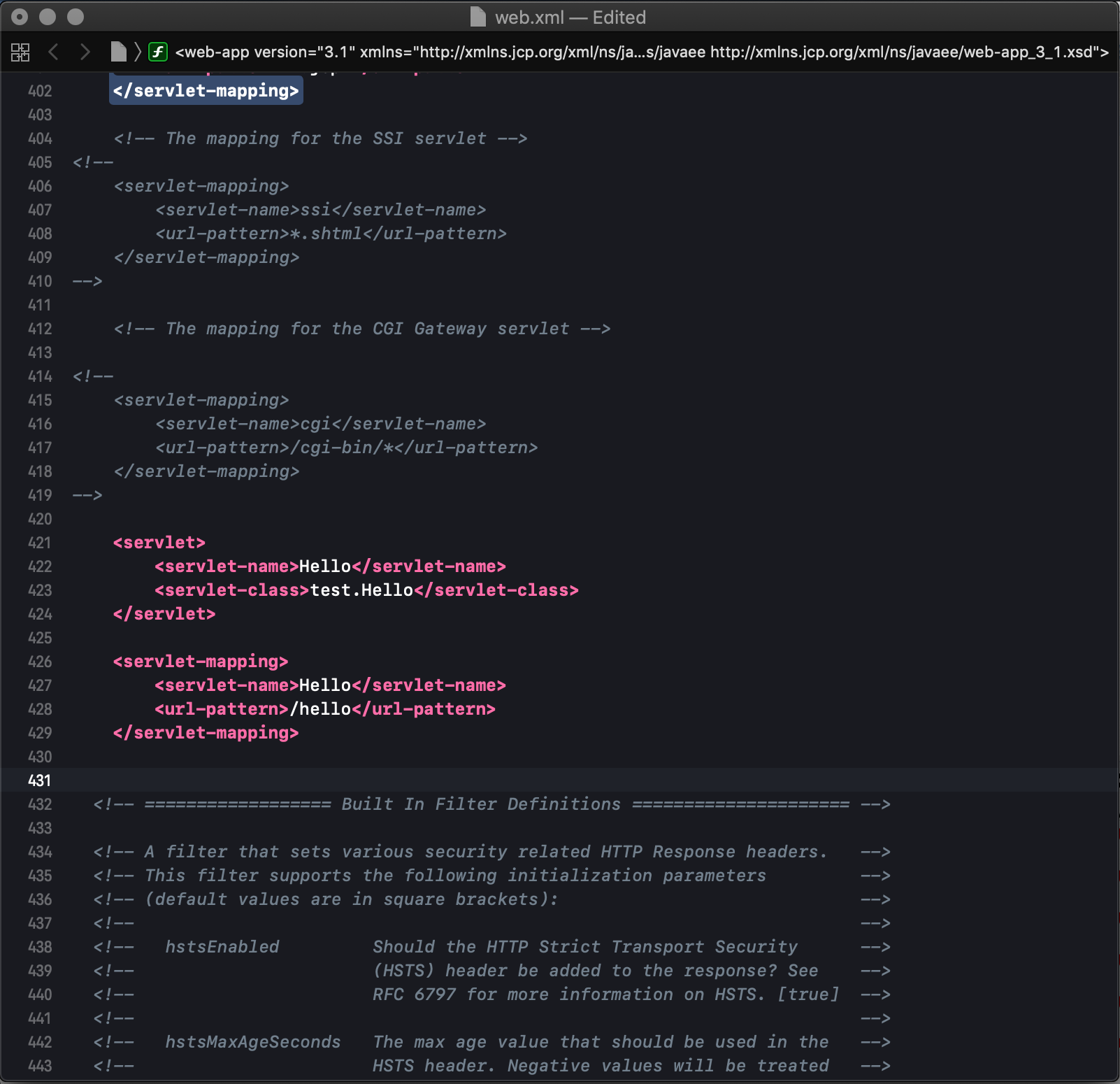 - 아래와 같이 servlet 설정을 web.xml에 추가한다.