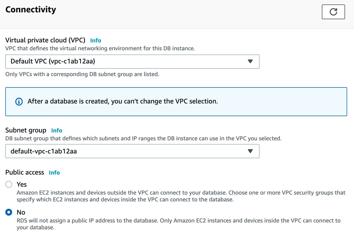 Connectivity 섹션에 Public access 항목이 있습니다.